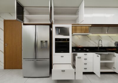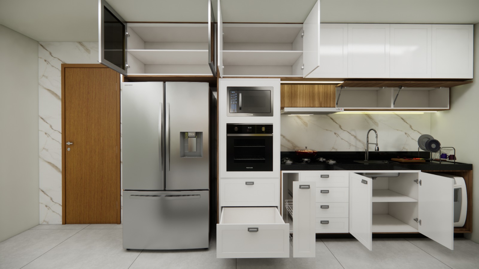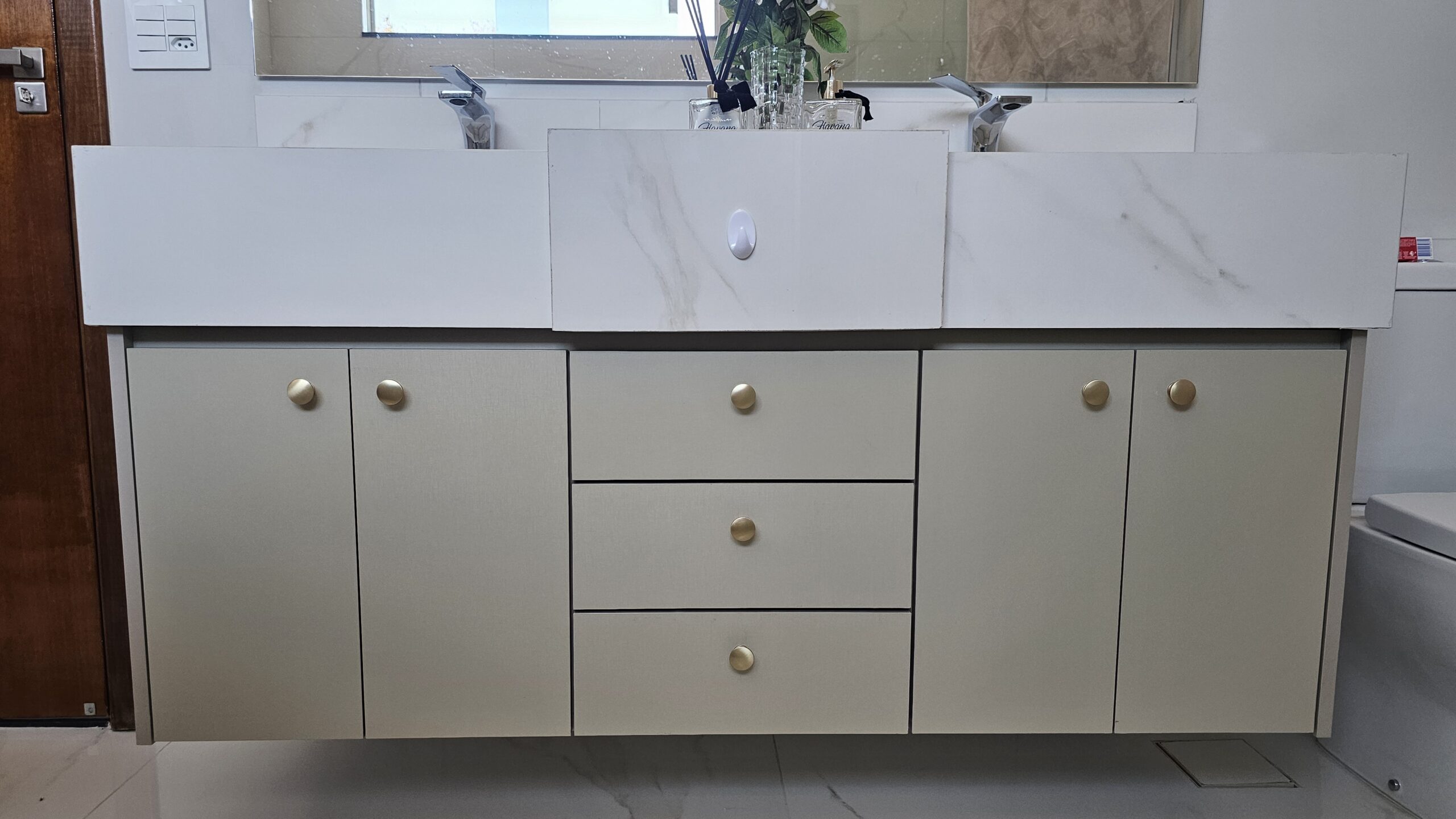 Usamos MDF de alta densidade e ferragens reconhecidas como Blum e Hafele, garantindo durabilidade, estética e performance.